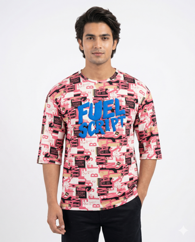 Elevate your wardrobe with the Valantino AOP Print 3/4 T-Shirt from LAREB. Crafted from premium Jaquierd material, this tee combines comfort with a trendy design. Perfect for casual outings or relaxed days at home, it features an eye-catching AOP print that stands out in style. Available at an unbeatable price of ₹125.